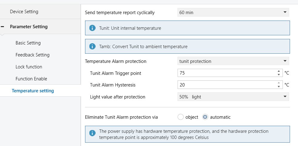 This feature records the output power and efficiency of the LED driver, estimating energy consumption over periods ranging from 10 minutes to 1 week. The data is then fed back to KNX system management, helping users optimize energy budgets.